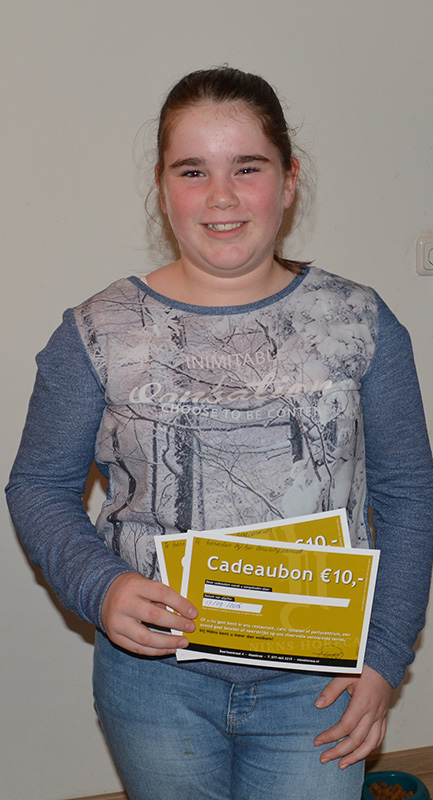 Op nummer 2 is geëindigd: Femke Jeucken; Gefeliciteerd! Jij mag lekker gaan bowlen bij Niëns in Maasbree!